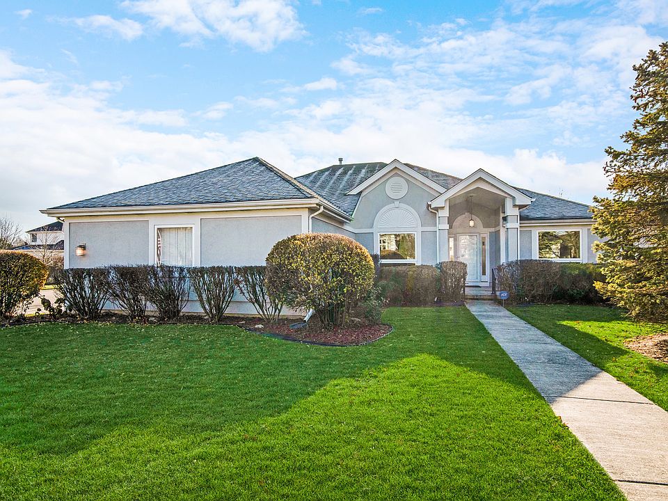The only ranch style home in the entire Brentwood Estates subdivision! Beautiful updated property with side load 3 CAR GARAGE! First floor features 10 ft ceilings in family room & dining room. 2 sided fireplace in family room & kitchen. Kitchen boasts shaker style white cabinets, all stainless steel appliances, granite tops, island, + eating area. Master suite has dual sinks, whirlpool tub, separate shower and massive walk in closet. The full finished basement is an amazing feature and doubles the livable square footage of this home. One side of the basement is set up as an in law suite, with huge en suite full bath, 2nd family room, bed, walk in closet, fridge, cabinets, and counter top. Basement also has an additional living room and plenty of storage space. Fenced backyard with deck & stamped concrete patio. Property has been extremely well cared for and is in great shape! Highly acclaimed District 204 Schools! Brentwood Estates is a sought after subdivision and properties in here are rarely available. Hurry and get in to view this beautiful ranch! Disabled Veteran exemption on taxes - enjoy no property tax bill for 2020 payable in 2021!