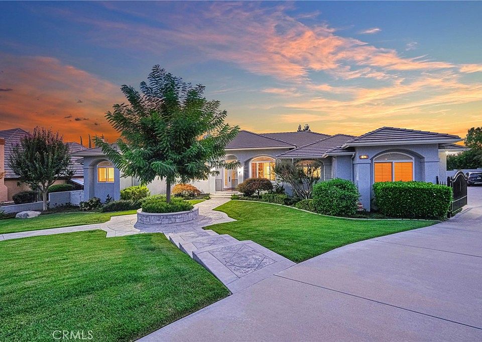 For the automotive enthusiast, the property features an extraordinary six-car garage equipped with epoxy flooring. The expansive grounds provide abundant parking for an RV, boat, and other recreational vehicles. The beautifully landscaped backyard offers a large covered patio for alfresco dining and relaxation, complemented by a separate area flourishing with mature fruit trees. This remarkable estate masterfully blends sophisticated design with exceptional amenities for an elevated lifestyle.