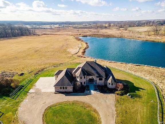 This 5 bedroom home has all of the features you would expect including Italian Marble floors, two kitchens, a master suite bath with Jacuzzi tub and marble shower stall, a sitting room with 2 story vaulted ceilings and overlooking your own private 8 acre stocked pond in the center of your 39 acres. Don't like stairs, no problem...there is an elevator! This quiet setting is located approximately 3 miles from the Toll Road and I-69 exits.