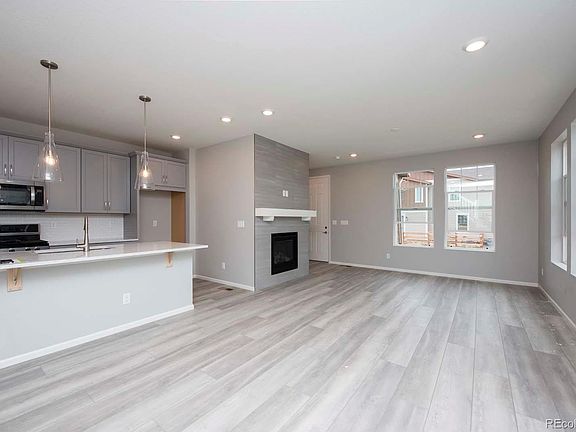 This popular, two-story, open floor plan features 9-ft. first-floor ceilings and a spacious great room with a fireplace. The roomy kitchen showcases an oversized island for extra seating, 42-in. Timberlake® flat-panel upper cabinets, quartz countertops and Whirlpool® stainless steel appliances, including a gas range. Upstairs, a loft provides space for a home office or media area, while a laundry room offers convenience. The primary suite boasts a walk-in closet and connecting bath with a dual-sink vanity and walk-in shower. Finishing touches include low-maintenance plank flooring at entry, kitchen, dining nook, living room and baths, Generation Lighting fixtures, Sherwin-Williams® low-VOC interior paint and a smart thermostat. Relax or entertain in the side yard, which offers a fence for privacy. Team Lassen represents builder/seller as a Transaction Broker.