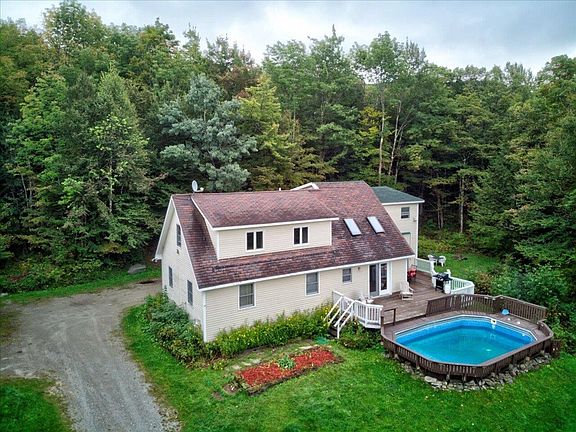 Only 11 miles to Jay Peak Resort, this spacious cape style home boasts 6 bedrooms and 4 bathrooms, including TWO primary bedroom suites, which could be enough space to host all of your family and friends! Some of the great features of this property include a large family room with 9' ceilings, built-in bookshelves, and gas fireplace. The kitchen has matching sleek black appliances, and quartz countertops. Great light throughout the home from shiny hardwood floors, expansive French doors, skylights, and SO many windows to let the sun flood in! Outside, enjoy over 10 acres of secluded land to roam. Splash around in the above ground pool with deck surround, putter away in the large detached 2-car garage with overhead storage, or sip your tea on the balcony in the upstairs primary suite overlooking a babbling stream! The huge basement could offer even more finished space if you need it! At the end of a long day, come home, sit on the deck, soak up the mountain views, and enjoy peaceful country life! Being sold "as-is".