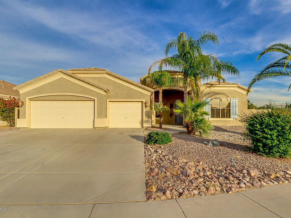 Move In Ready! Desirable, Single level split-floor plan has 4 spacious bedrooms, 3 full baths PLUS a den/office, with a 3 car garage, and new garage door openers. Private heated pool & spa. NEW freshly painted interior and NEW wood like tile flooring throughout. New baseboards. Large kitchen has an island with beautiful 42'' cabinets, NEW stainless steel appliances. This Great Room is an Entertainers Dream!! Large master suite offers a HUGE walk-in closet, garden tub and double sinks. Backyard features offer an extended stamped concrete patio, sparkling heated diving pool & spa with an amazing rock water feature. Home also has Sun screens for all windows, NEW Hot Water Heater. RV Gate. Prime location close to San Tan mall for shopping & restaurants with close access to the 202 freeway