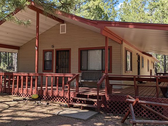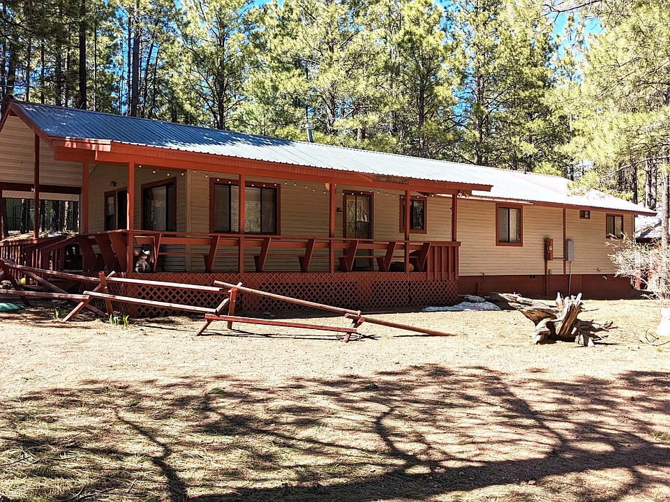 Delightful 3-bedroom, 2-bath, site-built home in the cool tall pine community of Forest Lakes! This 1-acre property includes a separate heated bunkhouse and an oversize 2-car garage with wood-burning heater. The living and dining areas are large for friend or family gatherings while you enjoy the free-standing fireplace! Lots of room for relaxing on the wrap-around covered porch. Price includes furnishings, tools, and household items. 1-year Home Warranty. Forest Lakes is the premier Arizona rim country community boasting 1-acre lots, full-time fire/EMT service, sheriff's office, community center, library, general store, and the award-winning ''Best Tasting Water in Arizona''. Our 7500' elevation results in temperatures 30 degrees below the Phoenix area. also included!
