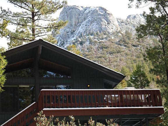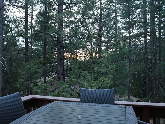 Spectacular views of Lily Rock frame and Tahquitz Peak this beautifully upgraded and well maintained home with privacy located on a fully fenced and gated one-half acre in Fern Valley. Charming open beam interior with pine paneling throughout, brick fireplace with cedar mantel, open kitchen with new stainless dishwasher, refrigerator and range hood. Separate dining area opens to a wrap-around deck that overlooks the fully fenced, park like setting with views in every direction. There are two bedrooms, one and a half baths and a large semi-finished basement area with laundry, including new washer and dryer, a workshop area and extra storage. This newly furnished home (outdoor furniture and barbecue also included) is very light and bright inside with two skylights and dual pane windows to take advantage of the beautiful south and westerly exposures. The privacy, views and setting are unmatched in todays market..