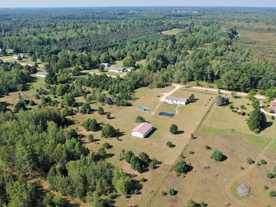 Welcome home! This STICK BUILT 3 bedroom 2 bath home sits on almost 4.5 acres less than 3 miles off of M-66 making travel to Barryton and Mt. Pleasant quick and convenient! The home has an addition that was completed in fall of 2022 giving you a HUGE master bedroom, large second bedroom and a very open concept floor plan from the kitchen, living room and dining room. This home has been lovingly remodeled with new floors and paint throughout and new appliances. The AC unit was installed brand new in 2022. Outside you will find a 32x48 pole building, and pond that was recently pumped and filled, and a pool that was bought and installed brand new in 2021.