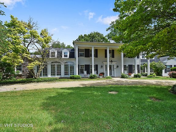 Secluded hilltop Southern Colonial located on a cul du sac street with a pond view from many rooms. This home is located in the heart of Barrington Hills, close to schools, village center and Metra with access to miles of horse trails for the equestrian. Mature trees and gardens with blue stone patio's and an in ground pool. The 1st floor includes a master suite with cherry cabinets in the master bath, custom oak paneled library with bar and fireplace, office, large great room and 1st floor laundry. The kitchen has granite counter tops and custom cabinets. There are 2 staircases to the 2nd floor. The home exudes warmth with exceptional wood moldings, 4 fireplaces, 5 bedrooms 41/2 baths and other rooms and features. The pool room includes a built in Jenn Air grill, fireplace and reverse osmosis drinking water system. There are 2 basements. one is finished and the other makes a great workshop. 4 car attached garage. The home has a custom ADT security system. WELCOME HOME