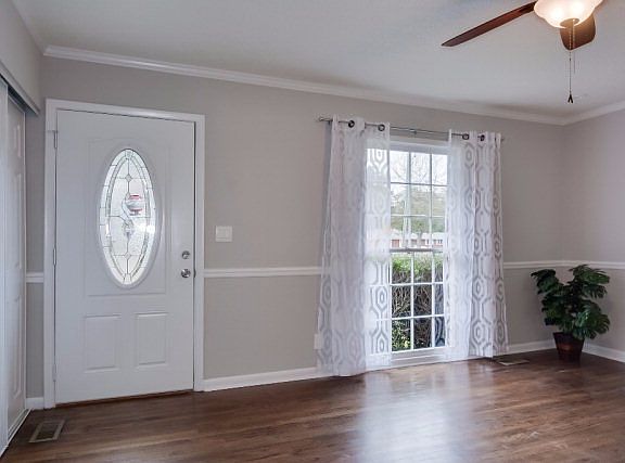 Beautifully remodeled & freshly painted w/ all new floors, granite counters & fixtures! This home has tons of character w/ a front entry that leads into a living room & a side/driveway entry that opens into a spacious great room with a rustic exposed brick wall. Eat-in kitchen is centrally located & boasts gleaming new granite counters, freshly painted cabinetry w/ new knobs/pulls & best of all, brand-new stainless-steel appliances. Front living room features a convenient coat closet next to the attractive new front door and introduces lovely, dark wood floors that continue in all bedrooms. Owner BR has en suite bath w/ new ceramic tile floor & shower w/ mosaic detail as well as an updated vanity & mirror. Full hall bath is convenient to BRs 2&3 & features the same upscale accents, plus dual sinks & a tub. 3rd full bath is near the back of the home, as well as a newly tiled laundry room with built-in cabinets. Spacious screened porch & large, flat, fenced yard complete the package!