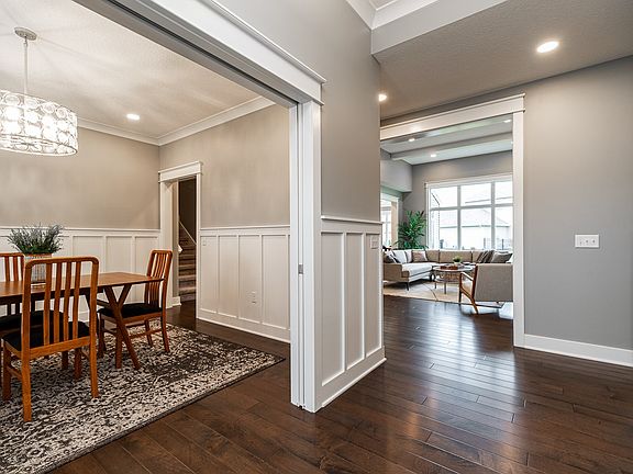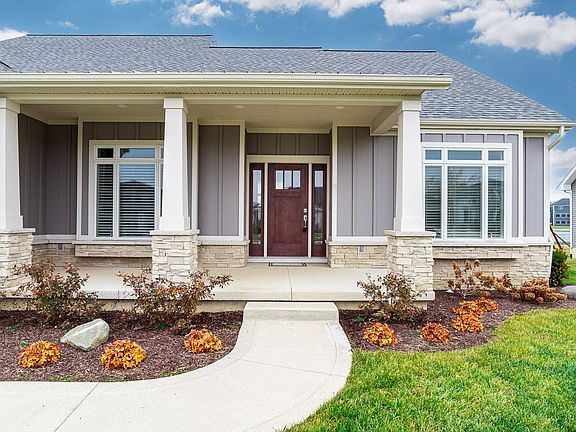 Look inside this 4 bedroom (possible 5 bedroom) 4.5 bathroom home it is bigger than it looks from the outside! Former model by Woodcreek Homes now for sale! Approx 4100 finished square feet on .38 acre lot. Craftsman charm w/ thoughtfully designed modern convenience. Foyer entry with wainscoting flanked by office or formal dining room with French pocket doors. Welcoming great room w/ gas fireplace, floor to ceiling stonework, beamed ceiling, built ins and wall of windows. Anderson 400 series windows. Open style kitchen w/ large island, Cambria quartz counter tops, cabinets to the ceiling with lighted glass display, GE Profile dual fuel range, GE dishwasher, Sharp drawer microwave, plus roomy walk in pantry. Large informal eating area with abundant windows that also leads to covered porch w/ wood cathedral ceiling. Fabulous pond views! Mud room entry from garage adjacent to nice size laundry area. Main floor master bedroom w/ coffered tray ceiling. Master bathroom w/ twin vanities, free standing garden tub, ceramic flooring & shower, and walk in closet. 3 bedrooms up, one shared bathroom plus 1 full bathroom, plus bonus walk in closet. Full daylight basement w/ many windows, wet bar, large game/recreation areas, full bath, spacious exercise room or office, and lots of storage that could be finished into home theatre room, craft/hobby area or whatever you desire. Prewired for exterior security cameras. 2-10 Home Buyers Warranty!