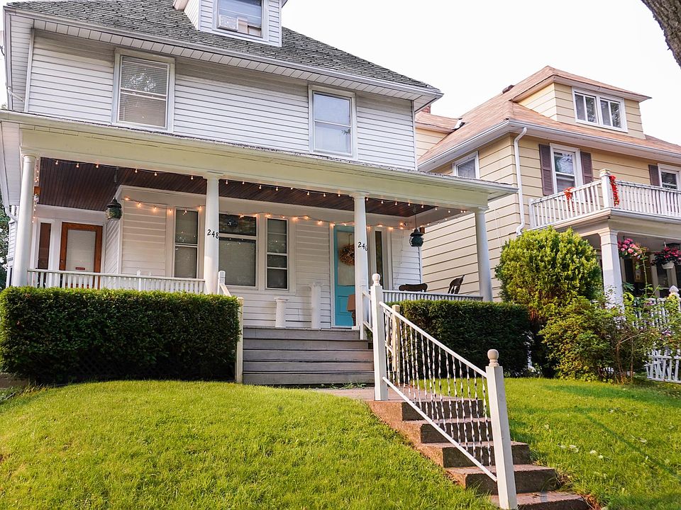 Gorgeous 2 bedroom apartment, 1st floor (the size of a whole house!) is a must-see! This is one of the best doubles in the 10th Ward! Gorgeous 2 bedroom apartment, 1st floor (the size of a whole house!) is a must-see! This is one of the best doubles in the 10th Ward! Starting with the large shared wrap around colonial porch, that we seasonally decorate, filled with chairs and side tables, Enjoy those wonderful breezy evenings. If you prefer a bit more privacy around the back your apartment also includes a private porch. The shared backyard is relax ready with a small fire pit and 4 spot parking lot to accommodate all tenants. Lets go inside: The first thing you'll notice is the beautiful oak trim throughout and gleaming hardwood floors! The entrance is complete with a vestibule / mud room, which is a room that acts as an antechamber between the exterior and the interior structure, to keep those cold drafts from coming into the rest of your home; complete with a coat rack and a great place to remove outdoor wear and shoes to keep dirt from tracking in. Moving on to the formal foyer, give yourself the extra space to set up a small seating area or even add a corner office to this area, a cute reading nook or display your favorite art. Painted a blueish toned gray to balance out the warm tones of the trim. The large living room is wonderfully lit with a bay window with stained glass detail. Great for entertaining. Can easily accommodate a full sized sofa set, entertainment center and coffee table. Freshly painted with a neutral mint color that compliments the oak woodwork. Moving on, Have that wonderful family dinner with a sizable dining room right off the kitchen featuring an additional large bay window with pockets doors to close off the room or leave open if you enjoy a loft like setting. Fits full sized dining room table and server buffet. Also painted a light mint color. As for sleeping quarters both bedrooms are nicely sized, lots of natural window light and 1 to 2 walk in closets. Freshly painted white with floors glossed over. It's a clean blank slate awaiting your personal decor touch. The kitchen also has ample window light, beautifully refinished teal toned cabinets with a Art Deco inspired backsplash. Not to mention the superabundant storage along with a designated light box lit area for a breakfast nook table. Also included is a refrigerator with working ice maker, new stainless stove and private back entrance located off the back porch as well as access to the laundry room located in the basement, equipped with apartment specific washer and dryer; and access to a laundry folding counter. Unusual at this price point, there is a full bath. Wide-open rooms with lots of beautiful illuminating window light. Over 1,300 square feet of living space, tastefully laid out for family usage. Retro Mid Century Modern blush pink bathroom, great water pressure, Newly re-trimmed vanity with old Hollywood lighting for the perfect makeup application or personal grooming! Bathroom also features an 9 ft cabinet for storing towels and other necessities and other toiletries. Walking distance from the library, Aquinas High School and convenient to bus lines. Located in the historic MapleWood Neighborhood, with many privately own properties and long term multicultural residents, makes it a great community to live in. Water is included in rent. Pets will be considered on a case by case basis with additional deposit and monthly rent expected. We run a background check for criminal and eviction history on all applications, Note: This does not automatically disqualify you. We verify income and require landlord references. Security deposit and first month's rent required for lease-signing. Close proximity : Kodak Park 2 minutes, High Falls District 5 minutes, Downtown Rochester and Charlotte Beach 10-15 minutes each way. Great space! This is a must see unit and will not last! I am looking for the right respectable tenant! If that sounds like you.... come take a tour of your new home! * Apartment is listed for September 1st move in date but options for month of August are possible. Renter pays RG&E.