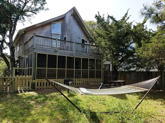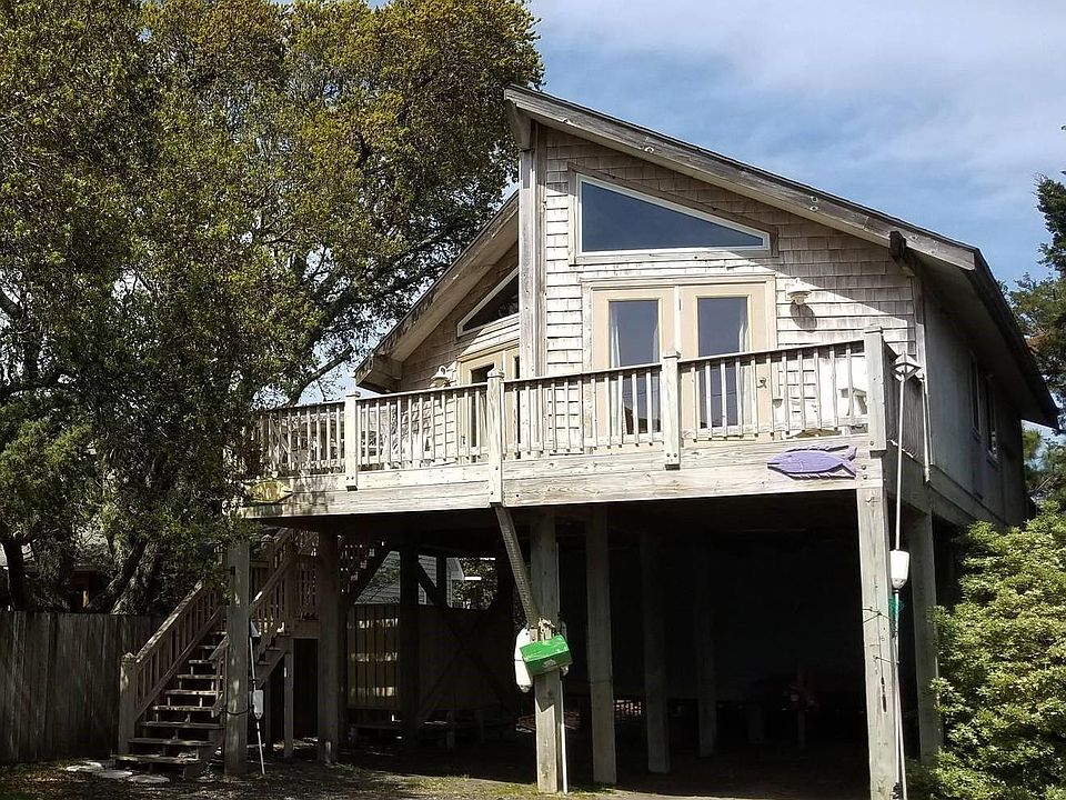 Starting your day off well is easy when you live next door to the Ocracoke Coffee Company! Tucked among the tree tops with a convenient village location! Walking distance to just about everything! "Out On a Limb" has 2 bedrooms, 1 bath, open kitchen/living/dining room w/original wood floors, bamboo floors in the bedrooms, cathedral ceilings with exposed large beam, central heat/ac, ceiling fans, recently updated full bath, kitchen bar for additional seating and gracious bedrooms. Unique windows and many oversized doors allow for plenty of light! "Out On a Limb" has many exterior spaces for entertaining or relaxing; 2 large open decks and a ground floor screened porch. There is a fenced area for your fur babies, a hot/cold spacious outdoor shower, a park style grill and a fish cleaning bench. "Out On a Limb" has a proven rental history; however, it would make a wonderful primary year-round home as well!