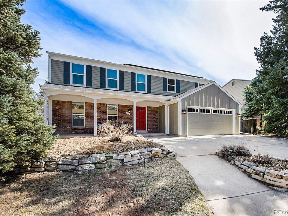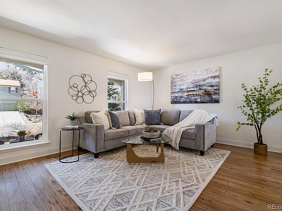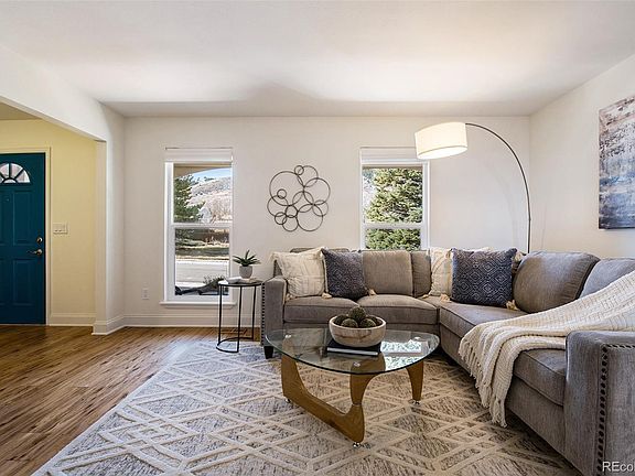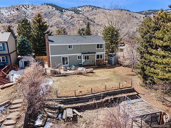 Charming home on a quiet street with foothill views in the sought after Heritage Dells Neighborhood of Golden! This home boasts 5 bedrooms upstairs, including a large master bedroom suite with a shower. One bedroom upstairs is non-conforming but a closet could be added, with a sixth non-conforming bedroom or den in the basement. The kitchen has beautiful custom wood countertops, stainless appliances, a separate dining area and living area. These walls could likely be taken out to open up floor plan. A separate family room with fireplace leads to the spacious backyard with gardening beds, chicken coop and patio area. The interior of the home has been freshly painted and with wood flooring throughout, new trim, and new carpet on the stairs and basement. All of the windows have been replaced, a newer high impact roof with extra insulation, blown in exterior wall insulation plus *owned* solar panels all make for a very energy efficient home. Other features include a sealed crawl space, improved air ducts and a newer oversized electrical panel installed. This home is a half mile to the Apex trail system for mountain biking and hiking, and connects to the paved trail to downtown Golden which is approximately 3 miles away. Easy access to I-70, the light rail and downtown Denver. The sellers have gone above and beyond getting this home ready to sell... a must see!