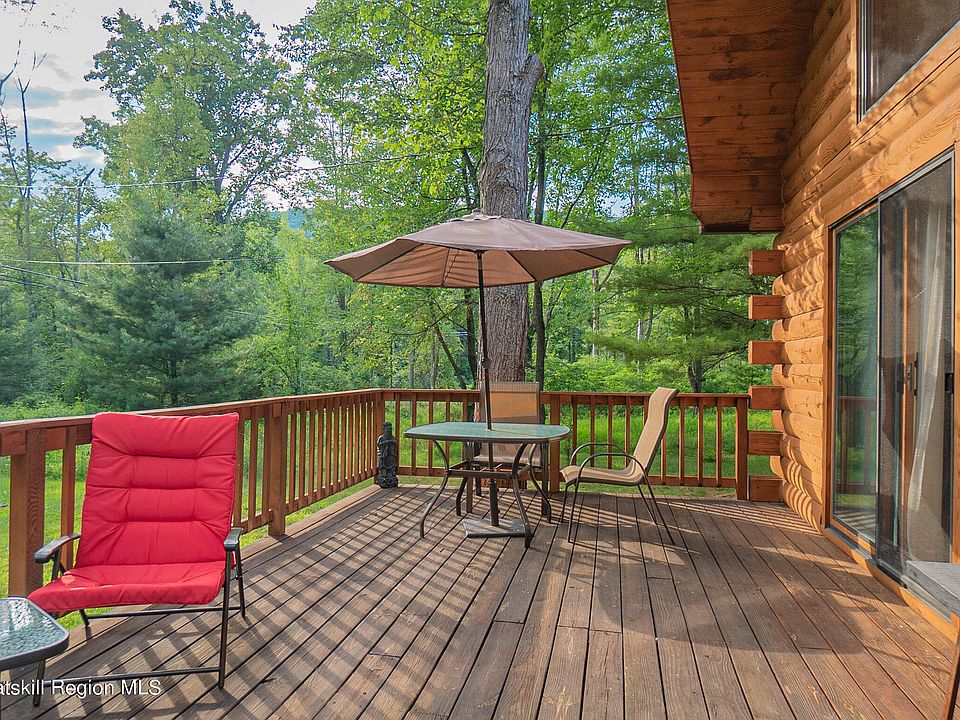248 Bostock Road, nestled on more than five beautifully-wooded acres with a stream, is the dream home you've been waiting for! This custom-fitted, one-owner log home has three bedrooms, an open kitchen and vaulted ceiling, with a skylight that lets in glorious light, all day long. With two bedrooms on the first floor, and a large lofted sleeping area on the second, this home offers space and comfortable elegance for full-time living, or a serene respite from the city. Radiant heated floors in the living room and sliding doors to a huge and inviting deck make this a year 'round source of pleasure. Loaded with upgrades and lovingly-maintained, it is located on a quiet country road with plenty of room for expansion, or property can be subdivided. In the heart and soul of all the things that make it special - ski areas, Woodstock, Phoenicia, and Kingston amenities - 248 Bostock Road is a terrific reason to call the Hudson Valley, HOME.