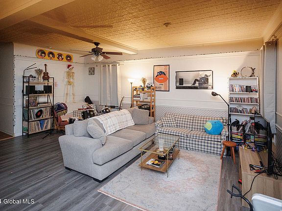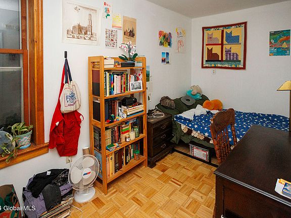 A great two family first floor unit offers. three bedrooms and two baths, the second unit offers one bedroom, one bath with a living kitchen area. Also in there is a small room, possibly could be made into an office or a baby area. There is a garage that. could be used as a workshop or a man cave. Hardwood floors. Close to the park and a short commute to Albany..