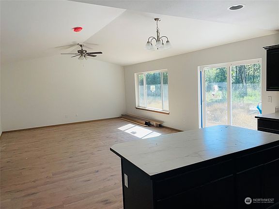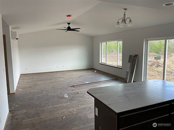 New Rambler on 2.4 Level acres. Great room concept! Kitchen with stainless appliance and Engineered hardwood floor entry through Kitchen and Family room. Family room with vaulted ceiling and fan and mini split A/C. Primary bedroom with walk-in closet and own bath. Plenty of room for RV, toys etc.. Level area for future detached Garage/Shop! Home is 97% complete!