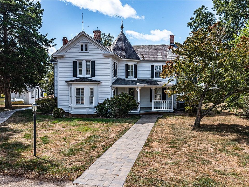 Step back in time with this Queen Anne Victorian Farmhouse, built in 1870 and lovingly updated to blend the elegance of yesteryear with the conveniences of today. Nestled on Tabbs Creek, just off the Chesapeake Bay, this waterfront treasure offers the perfect balance of history, character, and modern comfort. The home features 4 bedrooms and 3 full baths, along with a layout that flows gracefully for everyday living and entertaining. Inside, you’ll find hardwood floors, intricate millwork, and a beautifully renovated kitchen, as well as fresh interior paint and numerous recent upgrades. Enjoy the outdoors with a private pier in excellent condition, offering 5–6’ MLW and a boat lift, ideal for boating, fishing, or crabbing. When not on the water, relax by the in-ground waterfront pool, framed by over 2 acres of mature grounds. Key updates include a new kitchen, new pool liner, new pavers, multiple new HVAC units, and more (see feature sheet for full list). The slate roof was updated in 2014, with architectural additions marking the home’s evolution: a two-story front wing added in 1912 and a rear addition completed in 1990. Located just minutes from White Stone, Irvington, and Kilmarnock, this property offers easy access to boutique shopping, dining, and community amenities, all while preserving its rich history and timeless waterfront setting. This is more than a house—it’s a piece of Northern Neck history waiting for its next chapter.