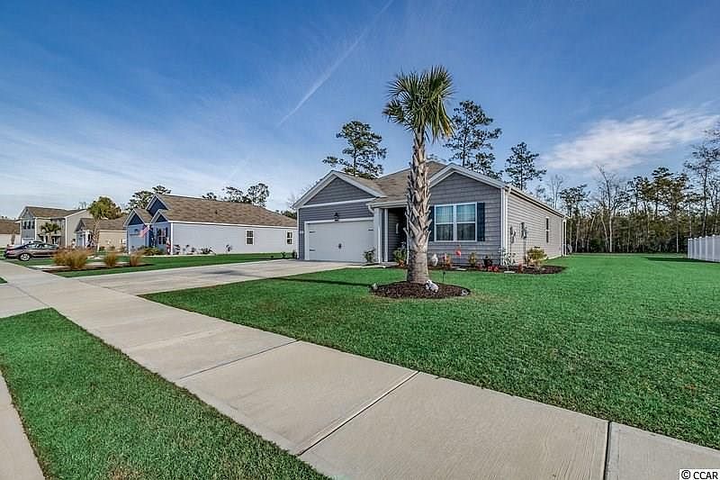 Need a 2018 new home near Carolina Forest? Great price for large lot and like new home only better with upgrades! And only 20 minutes from the ocean! This beautiful 3 bedroom, 2 bath home sits on a large lot that backs up to woods in a NATURAL GAS Community. Has a Conway address but near Carolina Forest at International Dr.! Owners added more concrete driveway parking space up to the 2 car garage, a screened back porch, sprinkler system, ceiling fans throughout! All this added to the already fabulous open concept living area, featuring a well designed kitchen with large granite island with space for seating or food prep, pendant lights, and stainless steel appliances! Wood-like LVP for family living extends throughout all the living areas and cozy carpet in the bedrooms. The master has 2 closets, a large shower, and double sinks. The whole home is full of modern grays and the latest living ideas, including a nest thermostat, camera doorbell, security, and "smart" technology. Don't let this lovely home get away! Start 2021 off right with a better than new home that is priced to sell!