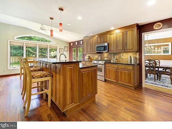 Welcome to 248 Carriage Hill Drive in Moorestown's desirable North Riding neighborhood. Pride of ownership is evident in this 5 bedroom home from it's charming curb appeal, throughout the well maintained home, and out to the large grassy backyard complete with paver patio, a colorful, gingerbread playhouse, and shed. The kitchen is oversized and open to the adjacent great room and offers granite countertops, tiled backsplash, Brazilian Cherry Hardwood Flooring, plenty of cabinets, and stainless steel appliances including a Kitchen Aid 4 burner gas range, KA dishwasher and built in microwave. The granite topped island houses a double stainless sink and dishwasher on the one side along with a raised counter that accommodates seating and has unique cabinetry below. The expanded eating area with vaulted ceiling and ceiling fan offers views of the lush, private backyard. The step-down great room is large and comfortable with neutral carpeting, a wood burning fireplace with brick hearth and surround and wood mantle with custom shelving. As with the kitchen, the great room boasts a soaring, vaulted ceiling with plenty of recessed lighting and a ceiling fan. This floor is complete with a traditional living room and dining room boasting custom trims and hardwood floors, a study, powder room, and large laundry room that accesses the garage. Upstairs the master en-suite is home to a large walk-in cedar closet and beautifully updated spa-like master bath with pocket doors and features a custom vanity with charming upper and lower cabinetry and large tiled walk-in shower with two showerheads including an overhead rainfall shower. Four more, yes that's right, four more bedrooms all with hardwood flooring and a beautiful, recently updated hall bath complete the space! The finished basement space is newly painted with neutral carpet and is the perfect spot for an extra family game exercise room. This is a wonderful home on a quiet street in a wonderful neighborhood! Schedule your tour to see it today. Home Sweet Home!