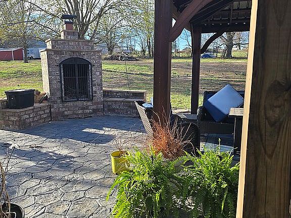 Open concept livingQuartz countertopsNew roofModern walk in showersMarble floor entryNew anderson windowsAll brick outdoor fireplace