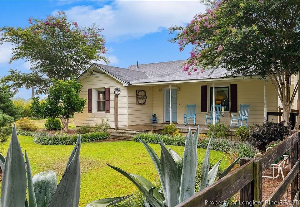 This lovely 3 bedroom, 2 bathroom farmhouse situated on 1.08 acres in Stedman features updated bathrooms, beautiful hardwood floors, spacious utility room, a bonus room perfect for an office, playroom, or nursery, and a covered front porch made for rocking chairs overlooking a beautifully maintained, mature garden with flowering trees and perennial plants. The eat-in kitchen offers plenty of storage, custom wainscoting, and tile backsplash. The separate garage has been wired and can easily be converted into an in-law suite/apartment. Below the garage is a basement with tons of storage space. At the rear of the property is a custom built chicken coop and mature trees. Situated on a quiet road with no through traffic and only one neighbor, surrounded by lush farmland, this well-loved home has all the space and peace and quiet your heart desires!