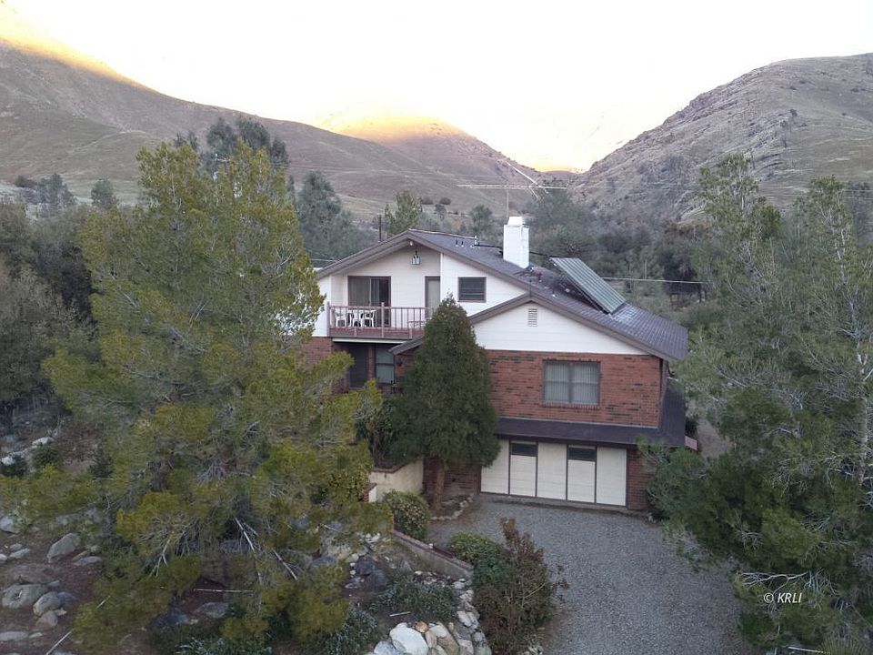Prime location ! This multi-level custom built, solar heating potential, double insulated home includes guest Quarters or studio apartment with kitchen and bathroom with its own entry to the quarters. The 2,899 square foot brick home has acres of Forest land in the back yard with plenty of privacy and an abundance of deer roaming and includes: 2 Presidential master bedrooms suites with walk-in closets, Guest quarters, 2 insert fireplaces, pellet and wood burning, 4 bathrooms, solar heating, oak wood floors, tile kitchen, built-in cabinetry throughout the entire house with huge storage rooms, pantries, basement workshop, wine cellar, and more storage, and RV DUMP! Wonder off into the BLM land in search for GOLD right out your back door. a STONES THROW from the MIGHTY KERN RIVER, 40 minutes from the famous GIANT SEQUOIAS! Retire here with only ONE stop light in the whole town!!!