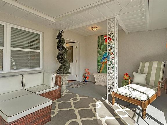 Don't miss this opportunity to own a very distinctive, South Venice gem! This home is like something right out of an episode of HGTV. The elegance of this home is in the details. Carefully designed by the owner, this home has style and charm throughout. Gorgeous, new landscaping offers amazing areas of nurtured outdoor space that will only get better with age. Brand new luxury vinyl fencing provides a sense of privacy for this oversized lot. You are greeted by a new paver driveway and walkway up to the front enclosed screened piazza. Upon entering the door, you are greeted by a relaxing seating area. The front door opens up to a lovely living space that will definitely please. The living area features a beautiful clean look with a custom ceiling fan and warm glossy laminate flooring bordered with a 5 inch trim throughout. The dining area, with its mesmerizing lighting sits just off of the kitchen and provides for an elegant yet relaxed setting overlooking the beautiful brick patio and refined outdoor living space beyond the sliding door. You'll delight in the kitchen's clean cabinetry with smooth quartz counter tops and matching backsplash. Newer stainless steel appliances add to the design. The circulation of the home is unique in that it flows freely either way from dining room to the stunning oversized bonus room to the main bedroom area and then back again to the main bathroom and kitchen. The spacious main bedroom connects to the bonus room with a pocket sliding door and hallway to main bathroom off the kitchen. Each of the two bedrooms feature warm laminate flooring, unique remote controlled retractable blade ceiling fans, and large walk-in closets with built-ins for extra space. The main bathroom features dual sinks set in marble with a light grey vanity that has plenty of drawers and storage. Step into the long Roman shower with mosaic tile flooring, bench, and marble shelf. The guest bathroom on the opposite side of the home features a large granite vanity, Jacuzzi dual flush toilet, and curved tub/shower combo with glass enclosure. There is also a relaxing Florida room off the bonus room with tile flooring, ceiling fan, and tinted windows all around. The oversized two car garage provides ample space for the washer, dryer, and includes a lovely built workspace with storage for tools. Stepping out from the bonus room, get ready to be impressed with the outdoor setting that awaits, featuring a paver patio sitting area, a pergola with cement pad that offers a relaxing lounge area nestled under a cover with lighting and plants that surround you. The elegance conveyed by this home is also complimented by the important main improvements made by the owner. New roof, newer AC, newer hot water tank, new driveway, newer septic, new fencing, and much more make this home a worry free, intelligent and long lasting investment. This home is located just minutes to the Venice ferry terminal that carries residents to their neighborhood secluded beach. Nearby is a boat ramp, kayak launch, parks, and trails just waiting for you to enjoy all of what this special community has to offer. Call today for a private tour of this amazing home!
