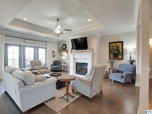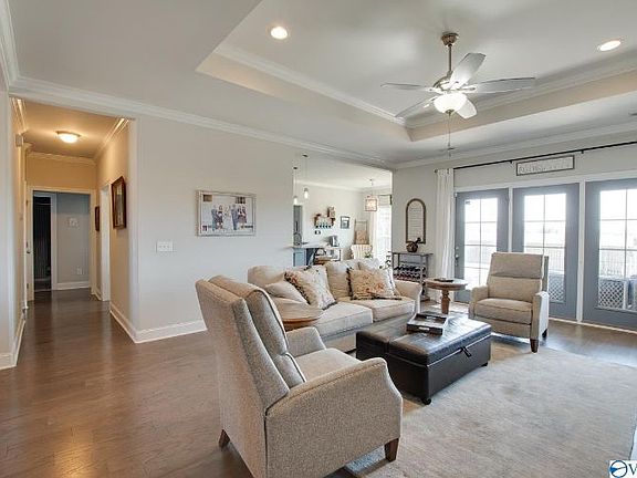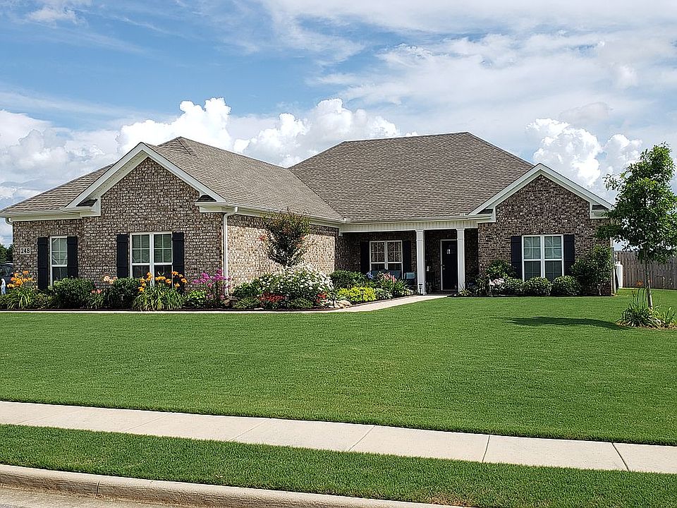 Beautiful, well maintained, 4 bedroom, 3 full bath, brick rancher on large corner lot cut de sac in desirable neighborhood. Open concept floor plan with hardwood floors throughout living areas, 9' ceilings with crown molding. Kitchen with granite countertops, tiled backsplash, custom cabinetry, stainless steel appliances and walk in pantry. Master bedroom has large bathroom and walk in closet. Mudroom coat cubby and separate laundry room. Lovely lawn with covered front and back porches. Large backyard with privacy fence backs up to Tate Farms....perfect for entertaining friends and family and watching the sunset! Have fun at the community pool and cabana!