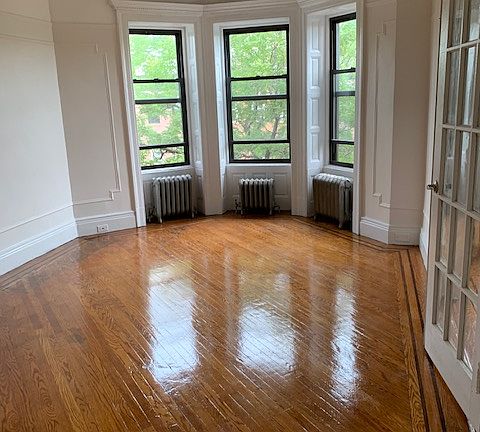 This spacious apartment has 1.5 bedrooms so it can be ideally used for a private office space behind two sets of classic french doors. It also has a separate dining area which is connected to the living room. Newly renovated kitchen with brand new appliances. Hardwood floors throughout the unit. The apartment is located on the top of a 4 story brownstone. Your new home will be on a treeline block with historic brownstones between Lewis Avenue and Stuyvesant Avenue. There will be a variety of neighborhood jewels such as Chez Oskar, L'Antagoniste, LunAtico, Manny's, Casablanca, Peaches, Grandchamps, Lovers Rock, Bed-Vyne Cocktails, Georges-Andre, Zabka, Saraghina, Daddy Green's Pizza, Natural Blend Vegan Cafe and Juice Bar. From access to transit via the A/C trains; B46, B25, B26 buses to daily necessities like supermarkets, laundry services or gym. NO PETS ALLOWED.