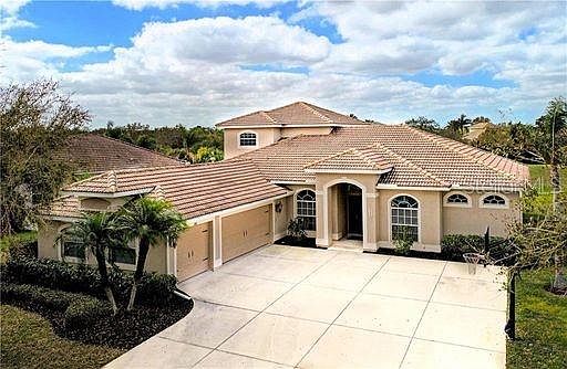 Welcome Home to this bright and beautifully-updated 4/3.5 with Bonus and Pool in amenity-rich GreyHawk Landing! Located on a spacious third-acre lot, you'll love walking through the front door to be greeted by the soaring, crowned, trey ceilings, wood flooring and an open, inviting floor plan. The chef's kitchen boasts new stainless appliances with French-door fridge, gas range with double-oven, wood cabinets and adjacent breakfast nook. Open your living space to the lanai via the fully-pocketing sliders, then enjoy the refreshing pool, outdoor speakers, and the convenience of a dedicated cabana bath. The Owners' Retreat offers the comforts of private lanai access, two walk-in closets, dual sinks, garden tub, large shower and private commode. Three more bedrooms and a bathroom share the downstairs, and a bonus room with a closet and full bathroom upstairs has the flexibility to use as a 5th bedroom. Full laundry cabinetry with utility sink, for great convenience and extra storage. GreyHawk Landing is a popular community featuring two resort pools, clubhouse, fitness center, lighted tennis/pickle-ball and basketball courts, ball fields, fishing pier, miles of nature trails and more. Currently zoned for top-rated schools!In addition to the rent, a resident benefits fee of $29.99 will be applied.