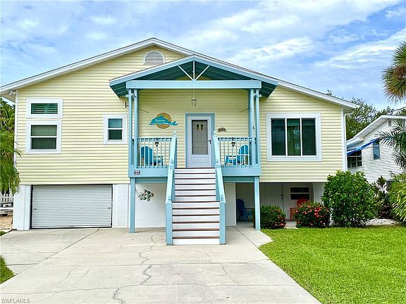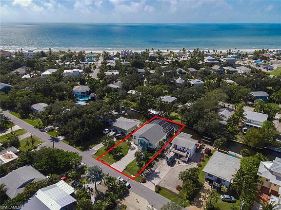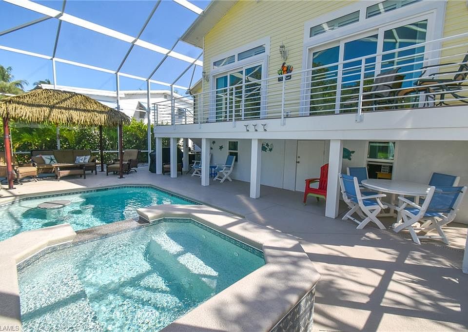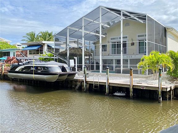 DIRECT GULF ACCESS & 500 YARDS TO THE BEACH! TROPICAL PARADISE! This beautifully updated 3 Bed/2 Bath home offers BONUS, BONUS LIVING SPACE. It's all about the Florida lifestyle, new Resort Style Pool, powder coated aluminum Tiki hut, two 5,000 Pound Davit Lifts with 10" cement pillars to reduce sea wall pressure, water access composite Dock for drop and go kayaking & water toys. Situated in the desirable South End of the Island with easy access to Bonita Springs and Naples. Spacious living meticulously updated and maintained. Updates include, 2018 installed ROOF w/50-year shingles, $70K+ RESORT POOL, Master Bathroom remodel, IMPACT RESISTANT WINDOWS & DOORS, Luxury Hard Wood Flooring, SS Appliances and new A/C's upstairs and down (3 newer mini splits lower level) and MORE! The open, casual and relaxing split bedroom floorplan offers formal dining, office, volume ceiling, generous Living Room w/ built-ins, laundry/pantry and multi-level outdoor living w/balcony overlooking the pool and canal. Then it's BONUS time! Two Bed/1 Bath, Kitchen & Living space is NON-COMFORMING but absolutely adorable. Plenty of space for 2 car tandem parking, water toy storage and work bench.