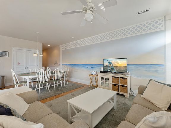 This spacious second-floor condo offers comfortable and convenient living with plenty of room for you and your family. With 3 bedrooms, 2 bathrooms, and a host of amenities, it's the perfect place to call home. Hardwood floors adorn the living room, kitchen, and dining area, adding a touch of elegance, while wall-to-wall carpeting provides comfort in the bedrooms. The kitchen is fully equipped, with the dishwasher and refrigerator being only 2 years old. This unit has been extremely well-kept and features beautiful hand-painted murals and is being sold fully furnished, ensuring a comfortable and stylish living space. The HVAC system and hot water heater are newer, contributing to energy efficiency and comfort. Enjoy a large private deck with comfortable furniture, perfect for relaxing and entertaining. A huge, rare amenity of this condominium is the expansive rooftop deck with 360-degree panoramic views of the ocean and bay. The rooftop deck is perfect for the Friday night fireworks. The property includes 2 covered assigned parking spaces along with an additional space that is shared with another unit. In addition, a storage unit is provided, stocked with beach chairs, umbrella, toys, and boogie boards for your beach adventures. An enclosed outside shower is available, making it easy to rinse off after a day at the beach. An elevator serves all floors, including the rooftop, making it easy to move in and out or access the common areas. This condo offers the perfect blend of space, convenience, and comfort, making it an ideal choice for those looking for a well-maintained and fully furnished residence. Don't miss the opportunity to make it your own, call today for a private showing!