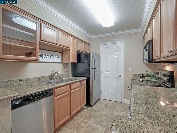 Welcome to this charming condo in the peaceful, resort-style gated community of Crestview. This home boasts an open floor plan with vaulted ceilings, new laminate flooring, crown molding, a spacious living and dining area, and a cozy fireplace. The updated kitchen features sleek stainless steel appliances, granite countertops, and an oversized pantry for ample storage. The kitchen, dining area, and modern Jack-and-Jill bathroom are beautifully accented with tiled floors. This home offers two generously sized bedrooms. The first includes mirrored closets, while the spacious master bedroom, conveniently located across the hall, features a walk-in closet. The living room and bedrooms have been upgraded with brand-new laminate flooring. Additional conveniences include an in-unit laundry area with a washer and dryer, as well as a private patio perfect for enjoying the California sunshine. The condo includes one assigned carport space near the unit, with extra parking available within the community. Residents enjoy access to a pool, clubhouse, gym, tennis courts, and scenic walking trails. Close to top-rated schools, the 680 freeway, library, and shopping including San Ramon City Center and Central Park. This home offers both comfort and convenience. Owner pays for water, trash, and sewage. Tenant pays for all other utilities. Increased deposit required for pet.