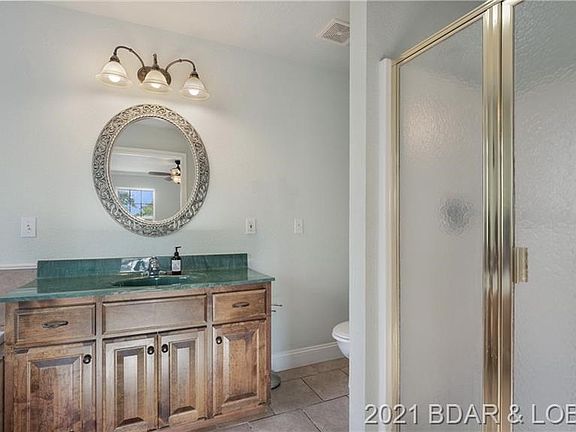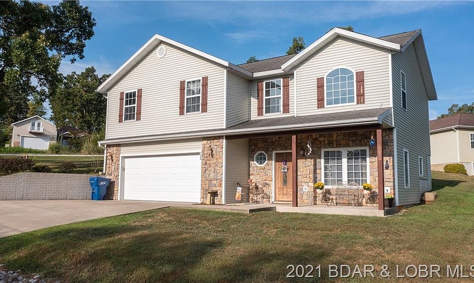 Never before on the market! Well cared for home in great neighborhood just outside of Camdenton. Great 3bed + an office/3bath home with 2 kitchens and 2 living areas. Lower level could be used as a mother in law quarters and is ADA compliant if needed. Upper level features a open living room/kitchen/dining floor plan with vaulted ceilings and 2beds/2bath with an office off the living room. Master bedroom upstairs has large walk-in closet, jetted tub & walk-in shower in master bath. Brand new carpet in both living rooms and bedrooms and tile in kitchen and bathrooms. 2 HVAC's, one for each level and has an avg. elec. bill of $80. Oversized 2 car garage with great storage. Open deck in backyard (with storage underneath deck) and covered patio off front entry door. Subdivision does allow fencing; just has to be approved through HOA.