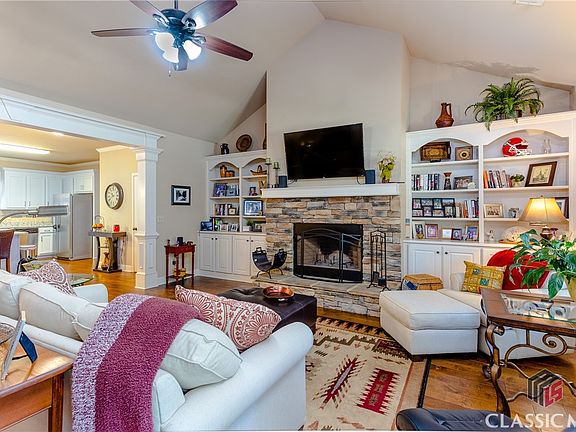 This spectacular Craftsman home is located deep into the highly desirable Falling Shoals neighborhood. This single owner residence has been meticulously maintained and updated to include still lustrous hardwood floors, a new HVAC system in 2022, and an added covered porch on the back patio. Masterfully crafted, the home features an abundance of decorous appointments from the crown moulding to the vaulted and trey ceilings that create an open feel. The sprawling floor plan includes more than 2,500 square feet that encompasses three spacious bedrooms, an office/playroom, and three full bathrooms. The Great Room offers a wonderful stone fireplace and ample natural light as well as custom built ins. The sizable Kitchen includes a large island, granite counters, a tile backsplash, and a huge walk in pantry. Situated in the back, the owner's suite boasts its own private bathroom with dual vanities, a dressing vanity area, a large shower, and a walk-in closet. Each of the additional bedrooms have carpet flooring and ceiling fans. The HOA provides a clubhouse, swimming pool, tennis court, and sidewalks.