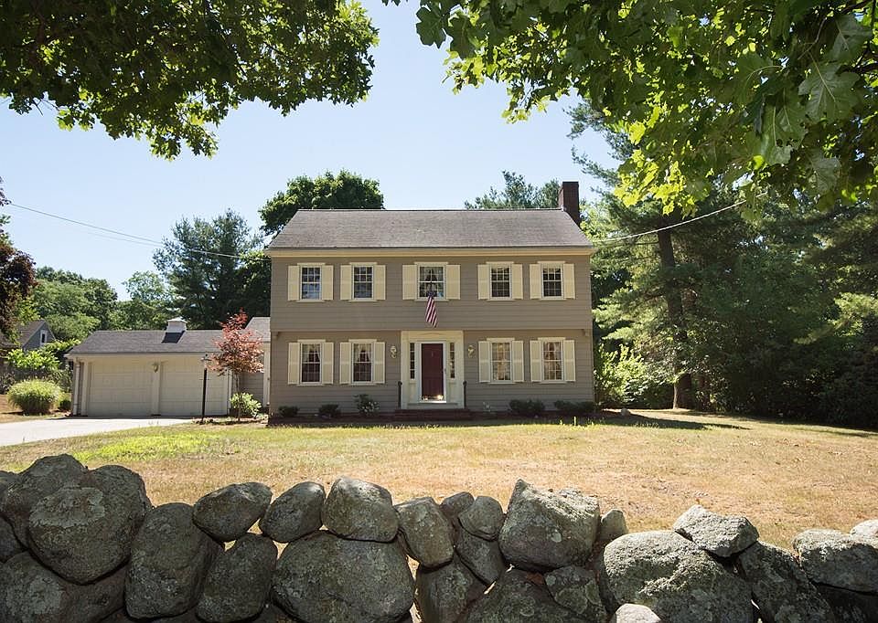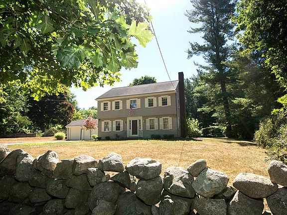 NEW PRICE! Beautiful 4 bedroom Colonial with 2 car garage, situated on almost half an acre, and set back off lovely country road with stone walls, is sure to please! Filled with lots of natural light, it offers a front to back Living Room with fireplace & Andersen french doors opening to fieldstone patio, & overlooking a spacious & level backyard. Formal Dining Room leads to light, bright, and inviting eat-in Kitchen. Gracious & wide staircase takes you to the four generous bedrooms and full recently updated Bath with jacuzzi tub & shower. Access to walkup attic completes second floor. Hardwood floors with satin finish thru out. Plenty of closets & storage, along with a Mudroom, Laundry Chute & Alarm System. LL with walkout incl. Laundry Rm, and partially finished area, ideal for office, game, or media room. Location perfect with easy access to RT. 3, Derby St. Shops, schools, restaurants, & more! Short drive to the Hingham commuter boat & train.