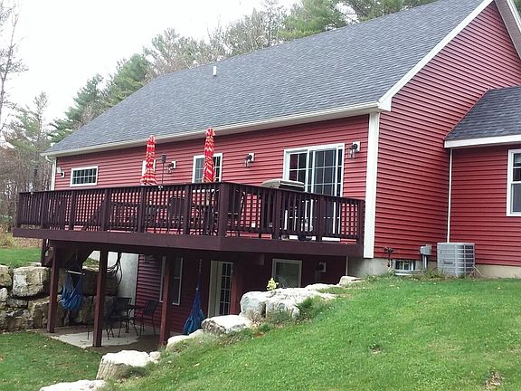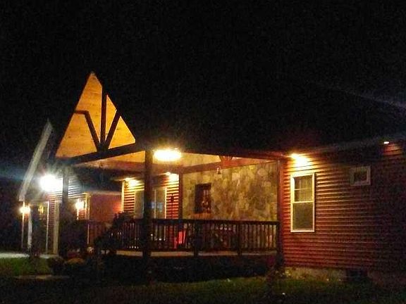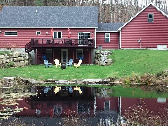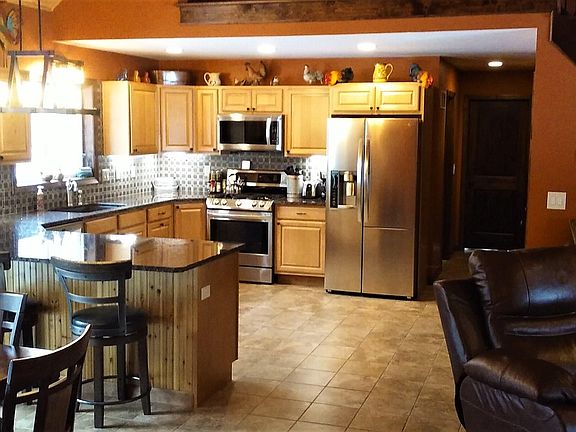 Beautiful Ranch In The Country! MUST SEE this custom designed hillside ranch on 5.6 wooded acres. This is the builder's own home, built to high standards with the best of everything in it. Quality construction with attention to detail in and out (spec list available.) The spacious kitchen features Yorktown cabinets with soft close doors/drawers, beautiful granite counter tops with natural stone edges (see photos), breakfast bar, ceramic tile floor, top shelf s/s appliances. Open concept kitchen, dining and living rooms, wood clad cathedral ceiling, ceramic tile and maple floors. Enclosed loft with tiled landing area, big bedroom, bathroom, and plenty of closet space. First floor master suite. Finished basement w/walkout to patio under huge deck overlooking deep pond. Clean gas heat, a/c.