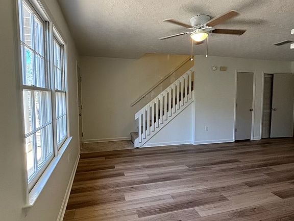 This newly renovated 2 bedroom 1.5 bathroom townhome is nestled in an in-town street located conveniently on the city bus line and is less than a 20 minute to the UGA campus. It features brand new, gorgeous waterproof luxury vinyl flooring throughout both levels and in the bedrooms, leaving carpet only on the stairs. Both spacious bedrooms incorporate two large mirrored his and hers closets, and the primary bedroom additionally featuring a third storage closet and large balcony. There are new fixtures throughout, with ample lighting and outlet plugs available. The living room features a large storage closet as well, in addition to a beautiful centrally located fireplace. Off the living space is a designated dining area adjacent to an eat-in breakfast counter overlooking the kitchen. Laundry hookups are available in the laundry closet in the hall off of the spacious kitchen which includes plenty of cabinet space and door access to the private backyard. This property also includes a driveway with parking spots and there's ample street parking for guests as well Trash and lawn care are included. Available for rent in July at $1300 / month - call to set up a showing today! 2 bed 1.5 bath townhome available now for rent at $1300 / month. Year long lease ready for move in early July.