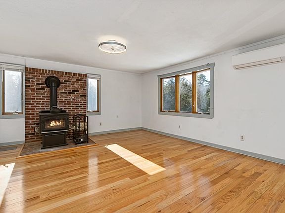 Opportunities and options abound with this spectacular lot, appealing to horse owners, developers, outdoor enthusiasts, or just people that want some privacy. The property consists of a tastefully updated home with spacious in law suite with its own entrance, a thoughtfully constructed barn (with ample storage space) that can be used as a workshop, horse paddocks, auto storage and repair, and many other avocations. The upstairs portion of the home consists of two bedrooms and two bathrooms. The primary bedroom boasts a walk in closet and en suite bathroom. Updates include a recently renovated bathroom and kitchen, hardwood flooring throughout, a wood stove, composite decking in the front and back, and mini splits for heating and air conditioning. The spacious downstairs in law suite has a bedroom and 3/4 bath with a full kitchen and two different living areas. The surrounding land has nearly 1000 feet of frontage on the Mad River, rolling about 50 yards back from the home, two fenced in areas that include one electric fence if horses are your passion, and a shed with heat and electricity along the long and winding driveway if you feel like getting away for a minute. Lastly, the lot is sub dividable, so if you feel like nearly 18 acres of land is a bit too much, feel free to chop some off and sell it. If you enjoy the land, though, rest easy. The property abuts 197 acres of conservation land owned by the Town of Farmington. Welcome home!