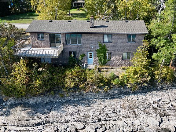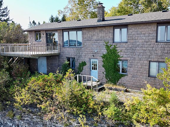 Cape to cape views and sunrises! First time offered for sale, this bungalow home on Georgian Bay in Lion's Head. The home has three bedrooms and a four piece bathroom with an open concept living/kitchen and with walkout to spacious deck. Stone fireplace in living room. Additionally, there a waterside gazebo and a Bunkie that could accommodate extra sleepovers. Incredible and breathtaking views of the bay! At the water's edge, there is flat rock - perfect for swimming. The stone wall along the roadside offers some privacy. The property measures 325 feet along the water's edge and is 65 feet deep. Exterior is designer block. Taxes: $7941.15. Property is located on a year round paved municipal road with rural services available such as garbage, recycling pickup and the road is plowed during winter time. A short drive to the village of Lion's Head for shopping, sandy beach, marina and other amenities that the village has to offer. Bruce hiking trails also nearby. Property is being sold "AS IS" by the Estate.