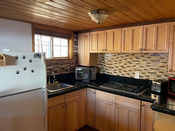 month to month lease at 2000 includes all utilities including gas, electricity, water, and trash. Furnished or unfurnished. Furnished with lift queen memory foam bed, large desk with stone, lower level futon and TV and wood burning and free standing gas fireplace, full kitchen. Close to Bear Mountain and Mountain High ski areas. One parking spot right in front of cabin with nice porch seating area.