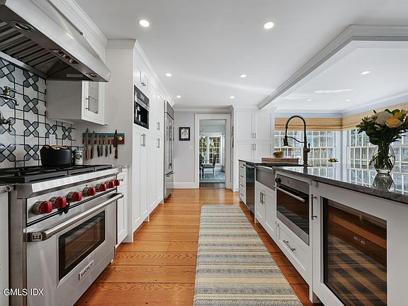 Charming 1848 antique farmhouse, skillfully updated & expanded for today's living. Highly desirable lower Lake Avenue location, just minutes to downtown Greenwich shopping, restaurants, & transportation. Recently updated kitchen/family room w/ fireplace & French doors to inviting terrace. Spacious living room w/ fireplace; welcoming dining room also features French doors to terrace.