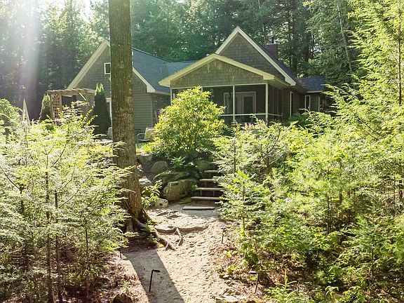 Lake living at its best in the heart of Maine at Long Pond. This spectacular twin gable construction offers warm wood accents & specialty features in every room. Its many fine qualities include high ceilings, a gas fireplace, eat-in kitchen w/ exposed beams, cozy reading nook, wet bar, a central bath w/ jetted tub & corner shower, central air (AC) & heating system & a sleeping loft that adds a touch of cabin-style charm while providing extra space for guests or family. Step outside and be amazed by the stunning screened patio with porcelain tile floor all overlooking dreamy gardens full of season long color. Venture down the path to a sandy gathering space with firepit, picnic tables, dock & coffee platform to sit and enjoy mornings on the lake. This quality home features Hardie cement board siding, Versetta stone veneer accents. Bonus features include fiber high-speed internet, bunk house, Kholer standby generator, deck, hot tub & more. Did we mention it has years of successful reviews as a premier vacation rental & is being sold with most furnishings included! Whether you're looking for a quiet weekend getaway listening to the loons, a year-round residence, or a successful income-generating vacation rental, this custom-built lake home has it all. Enjoy swimming, kayaking, fishing, or simply watching the changing seasons. A rare opportunity to own a slice of classic Maine lake life — come see it for yourself.