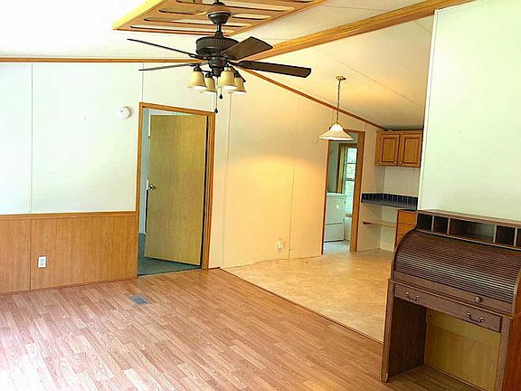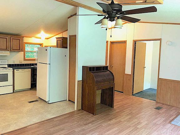 This doublewide is tucked into a back lot. It is semi handicap accessible including a ramp in the attached two car garage. Built in 2001 it features and open concept living trim, dining room and kitchen. The master bedroom has an attached handicap accessible bath and it open to the bedroom. There is a second bath and two bedrooms. The house is very livable in it's current condition but you may want to do a few improvements. New shingles on garage roof. Most importantly, it's good basic very affordable housing where housing is in short supply. A great value by any standard.