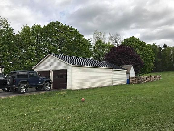 Cozy 3 bedroom, 1 bathroom home with a spacious backyard. New foundation, deep 2 car garage and paved driveway. Metal roof on both house and garage. First floor bedroom, bath and separate laundry! One floor living! Storage room and 2 bedrooms upstairs - one being a large master bedroom with 10x10 walk in closet. Remodeled kitchen and bathroom. Country living but 1/2 a mile from town - the best of both worlds!