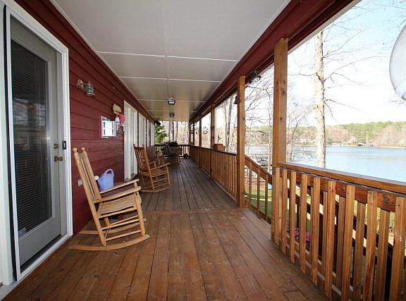 Wonderful Lake Gaston home situated at the mouth of Lyons Creek offering tremendous views of the main lake with deep water at the boathouse. This home has a newly remodeled kitchen with custom cabinets & granite counter tops. Totally open floor plan creates a fantastic atmosphere to gather with friends & family. Dining room located off the living area provides plenty of room for family gatherings. You will love the screened-in porch as well as the lakeside covered deck. This home features two master suites along with two guest rooms. Double car garage, dining room, screened porch and one of the master suites was added in 2003. This spacious master suite features walk-in closets and a wonderful balcony to enjoy the morning lake views with your coffee. Nicely landscaped yard creates a enjoyable setting. Single boathouse with rip-rap shoreline, deep water and over 400 feet of shoreline.