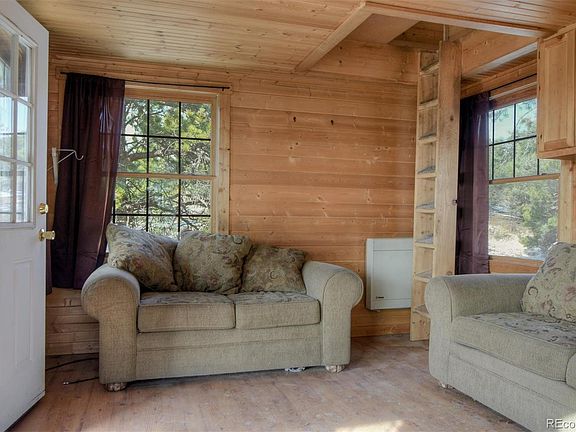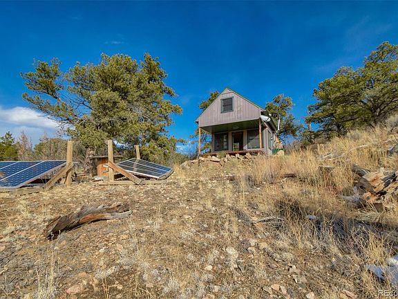 Off grid summer cabin with grow area. 640 sqft Cabin has two levels with a fire place and a small section of a porch with a beautiful view of the San gre de Cristo mountains that can been seen sitting next to the fire. A little 1.6 kw solar system in 12v battery set up for simple use. Has a small gun range area where you can do some target practice. Also has a compound for growing anything your heart desires! Gated Grow full of rich soil mended every year for rich plant growth. Simple hoop house design for easy assemble and disassemble for winter storage. A Well that is on the property for your water needs. If you like beautiful views plenty of wild life and piece and quiet this is the place for you.