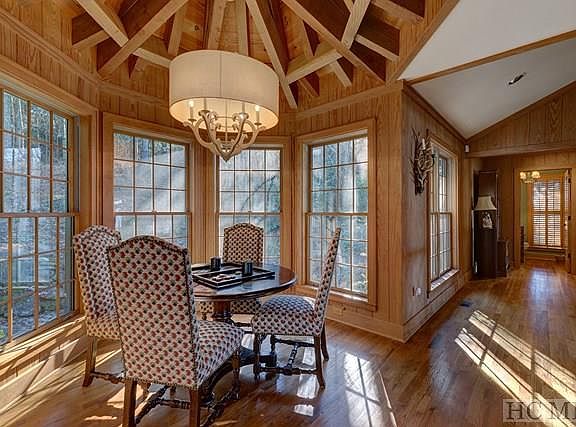 Outrageous views of Whiteside and many other mountains from this stunning Adirondack beauty sitting atop Chattooga Club's prime view ridge. Interiors boast lovely wood floors, warm pine paneling and interesting ceiling and railing details. Multiple fireplaces- in dining area, living room, covered deck, master bedroom and downstairs guest suite. All generously sized bedrooms have private baths and the upstairs loft bonus room for kids has boat ladder stairs, sleeping quarters and kid-sized bath. Casual yet elegant- a timeless home, it is situated on the most private road in the Chattooga Club neighborhood. Club membership is available by invitation, but not necessary with property ownership.