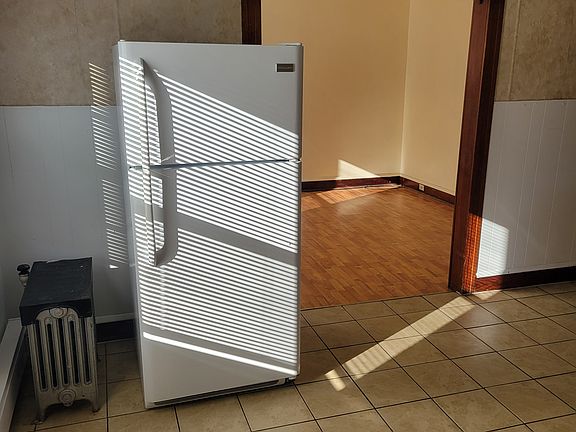 2nd floor apartment with off street parking. No laundry hookup No pets Tenant pays electric which is also the heat. Electric hydronic heat is cheaper than basic electric heat. Landlord pays sewer,water,hot water, and provides 1 garbage sticker per week. Close to super market plaza. Last 2 pictures of finished 3rd floor cannot be used as a bedroom. 1 year lease First ,last, and security due at signing of lease. Refrigerator and stove included.