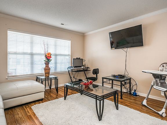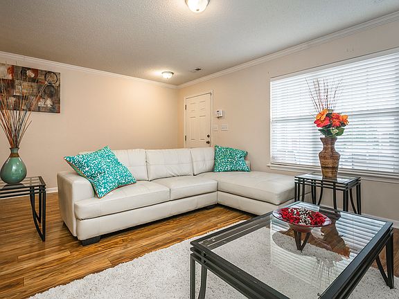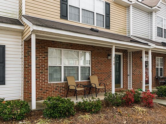 Come home to this low maintenance townhouse with rocking chair front porch, open living and dining area with laminate flooring. Two upstairs bedrooms each with en suite baths and walk in closets, master bath has double sinks. Kitchen has updated tile backsplash and island. Downstairs utility room, patio with outside storage. Home Warranty included.