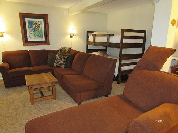 Come enjoy a peaceful vacation at this condo that feels like you're in the treetops! Located close to the ski-back trail and Canyon Lodge, ski/bike-in-out access. You're not far from all that Mammoth has to offer yet you feel like you're escaping in the forest. This spacious one bedroom/two bathroom home has bunks and a fold-out full sofa bed to provide extra sleeping room, and has been immaculately cared for over the years. Fireplace has been retrofitted with a gas log insert to provide ambiance and warmth (and you'll avoid the costly upgrade required by the Town). Once you arrive you won't need to leave, this complex has something for all of your entertainment needs...pool, clubhouse, tennis courts, hot tub, sauna, and best of all a BBQ/picnic area right out your door to enjoy all those tasty meals! Enjoy the covered stairs right next to your reserved parking space in the garage (no need to go outside on those snowy days). You have 4 reserved lockers immediately below the condo and the laundry room is a few steps down the hall....talk about convenience!!