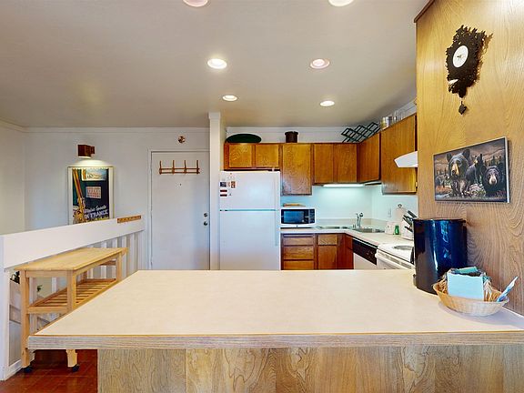 This inviting condo, perfectly timed for the ski season, offers an idyllic retreat in Mammoth with unparalleled unobstructed views of the surrounding trees and mountains visible from every window. Situated in close proximity to the ski area, you can easily ski back to the complex, making it a convenient haven for winter enthusiasts. Positioned in the desirable section of the complex, the condo benefits from abundant south-facing sunshine and boasts a layout that enhances the enjoyment of the scenic beauty, with the kitchen and living room on the upper level and bedrooms downstairs. Accessibility is a breeze with just six stairs to the front door, and the convenience extends to garage parking, eliminating the need for digging out your car in winter. Inside, the ambiance is warmed by a gas log fireplace, creating a cozy atmosphere on chilly days. The condo features a newer, energy-efficient water heater, larger than the typical units found in Ski and Racquet properties. With spacious bedrooms, the condo comfortably accommodates up to 8 guests, making it an ideal destination for friends or family. For those interested in potential rentals, this condo allows nightly rentals if the buyer participates in the current on-site rental program. The complex itself offers a range of amenities, including a sunny summer pool, hot tubs, sauna, tennis courts, a game room, basketball courts, and more, providing year-round entertainment and relaxation options. Convenience is key, as you can ski directly back to the complex and reach the slopes in just 5 minutes, eliminating the need for a car. Whether you're a skiing enthusiast or seeking a peaceful mountain retreat, this Mammoth condo combines comfort, convenience, and stunning views to create a perfect mountain getaway.